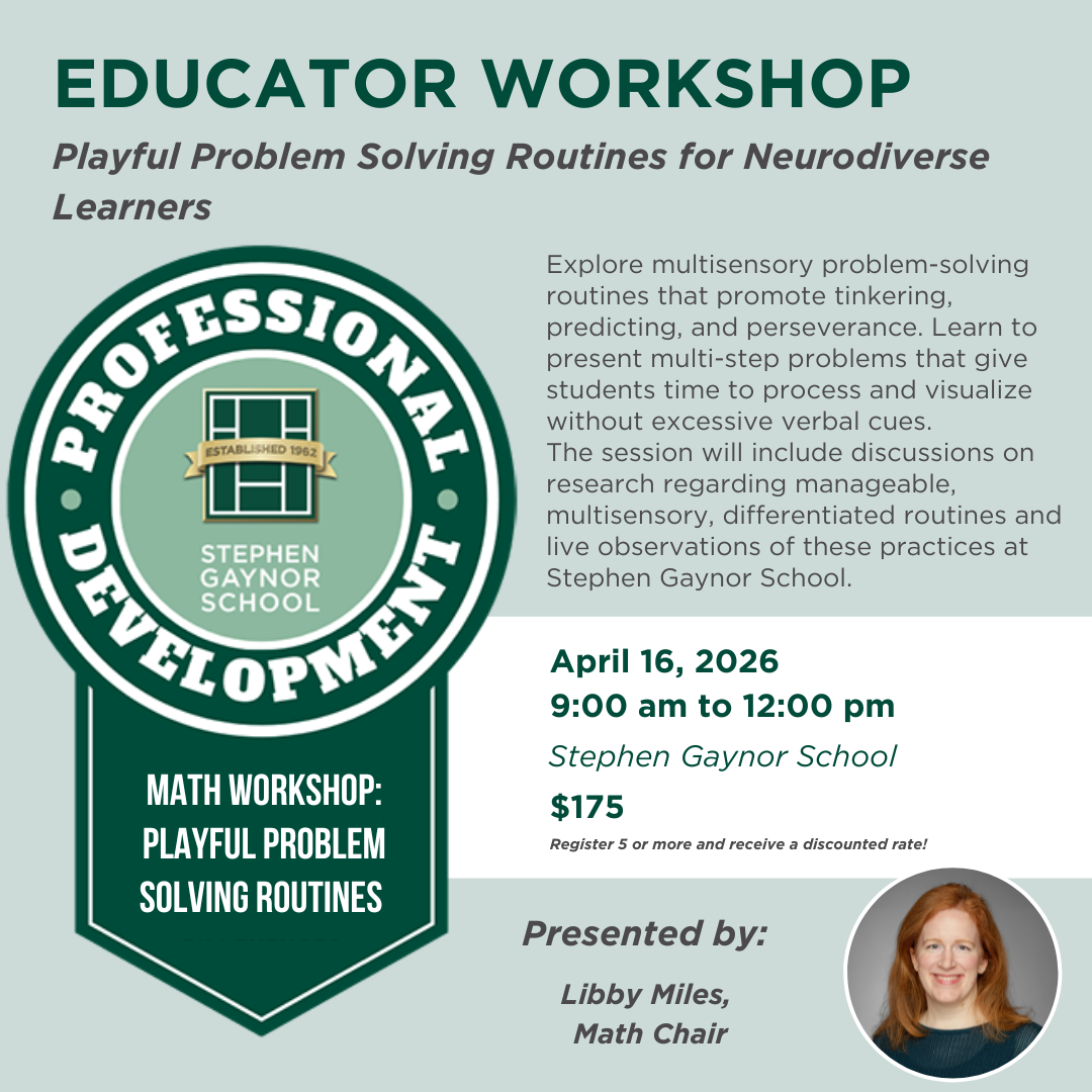 At Stephen Gaynor School, every child is welcomed as an individual with limitless potential. Children who learn differently first discover the joy in learning, supported by evidence-based approaches and a community of care. From Pre-K to 8, we educate the whole child through nurturing skills, confidence, and curiosity that empower them to reach their fullest potential.